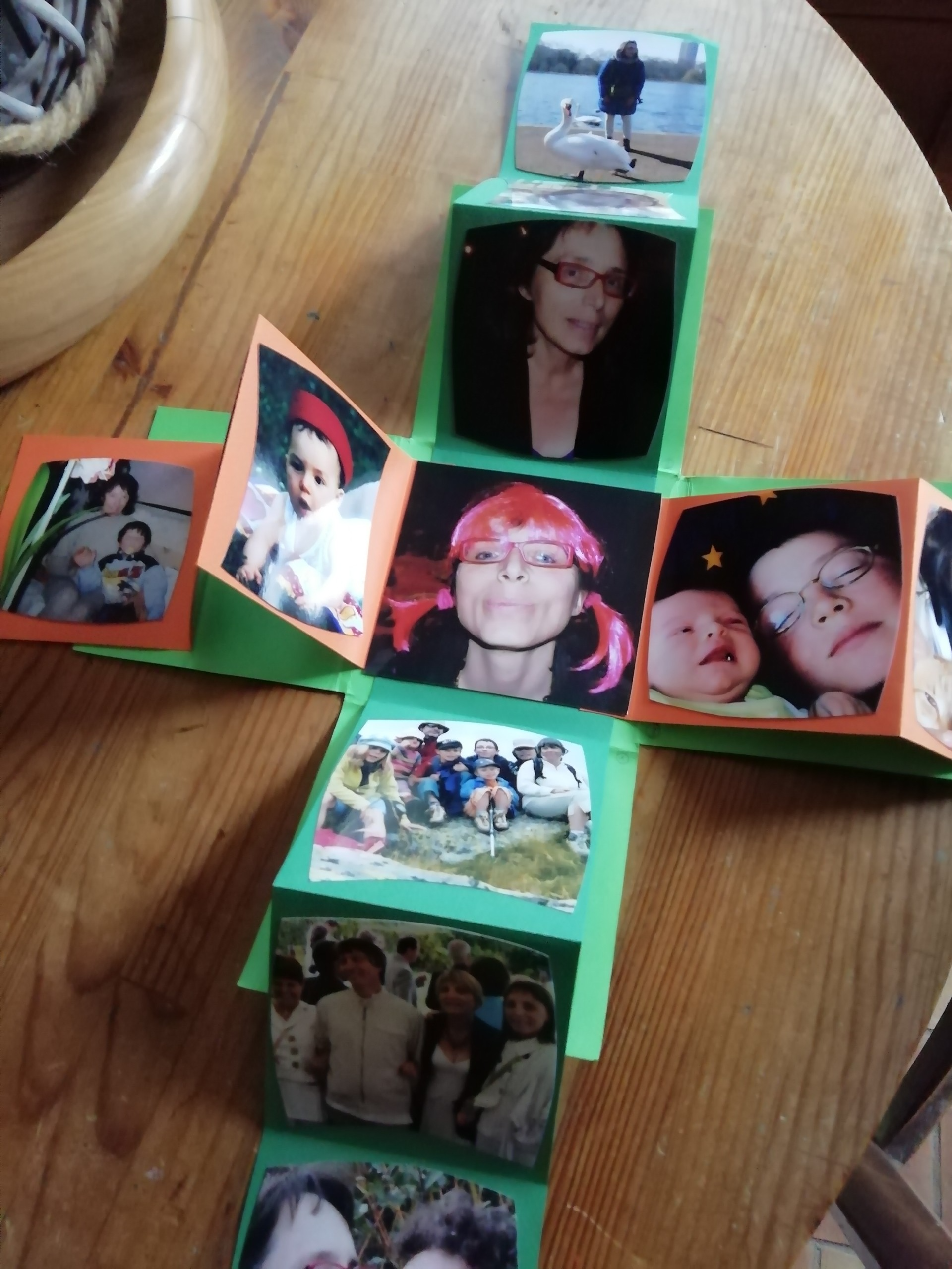 Venir de préférence (pour utiliser les gabarits à disposition pour les découpages) avec 26 photos de votre choix, sur papier format MAXI 15 cm x10.